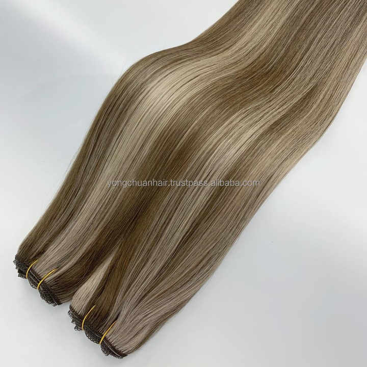 Genius 30 pulgadas Balayage europeo doble rizado brasileño color claro 12A virgen sedoso onda recta estilo extensiones de cabello humano