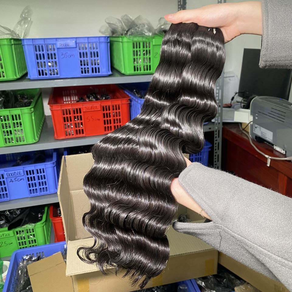 -A través de los pasos de inspección, embalaremos todo el pelo del cliente en la caja de cartón y pegaremos la cinta exterior para evitar el agua y evitar errores.