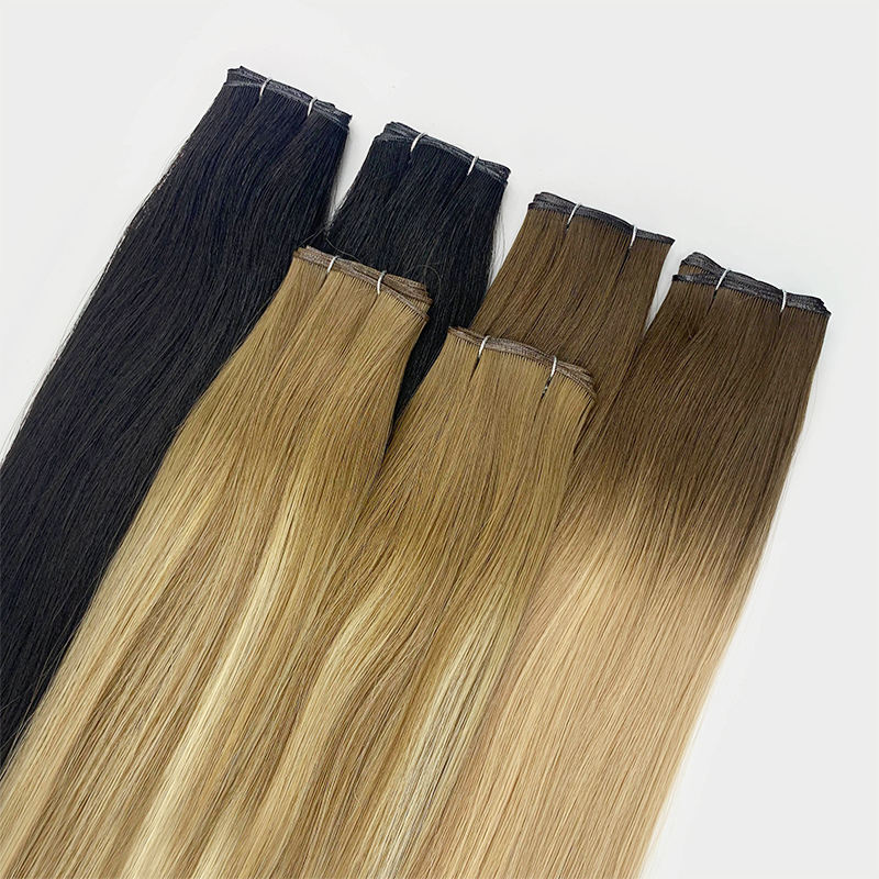Genius Weft Extensiones de cabello humano Cabello humano 100% Remy Virgen Ruso Doble dibujado Genius Weft Extensión de cabello