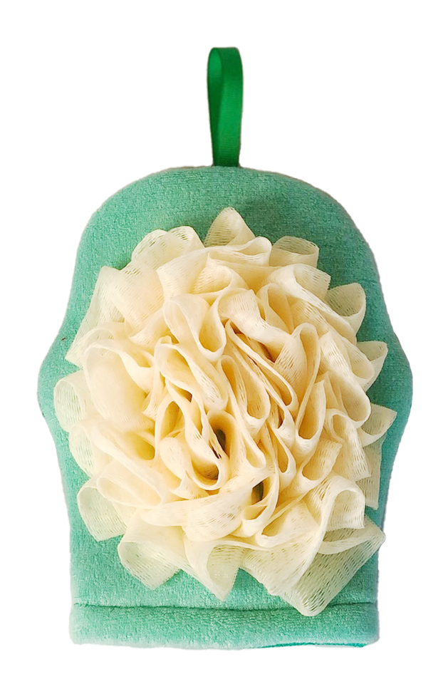 Guante de baño de árbol de Navidad verde de malla PE de rayón EXFOLIANTE SUAVE para una limpieza eficaz