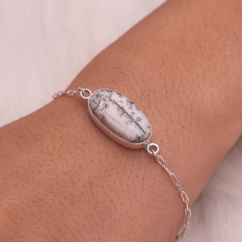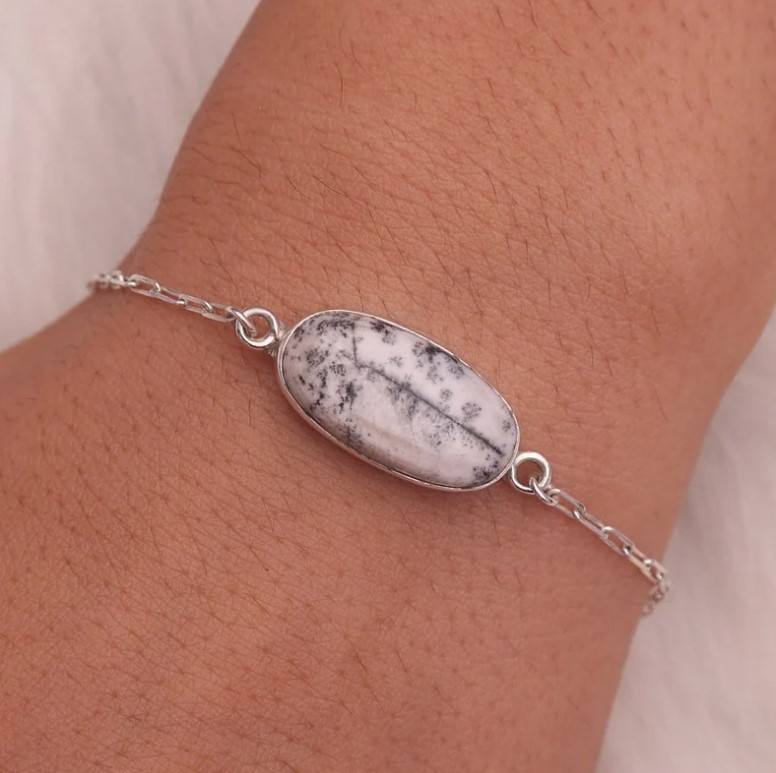 Nombre del producto:Natural Dendrite Opal Gemstone pulsera de plata