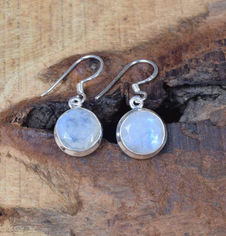 Product Name:Natural Faceted Rainbow Moonstone Gemstone Silver Earrings