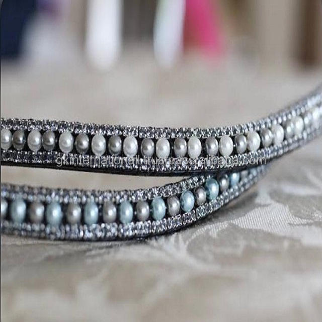 Banda de cuero negro auténtico para la frente, cristales de lujo, piedras doradas, personalizado, para montar a caballo, cuero Real ecuestre