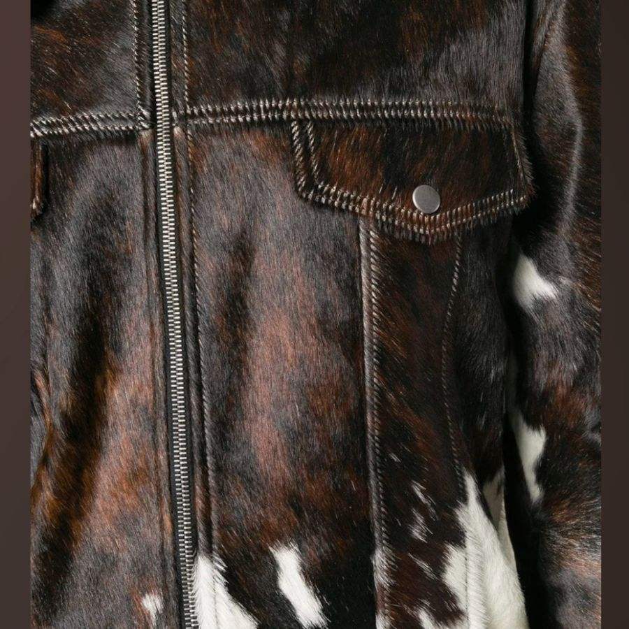 Chaqueta de Cuero Vacuno Genuino para Hombre, Estilo Motero, Estampado de Vaca Blanco y Negro, Chaqueta de Moda de Invierno