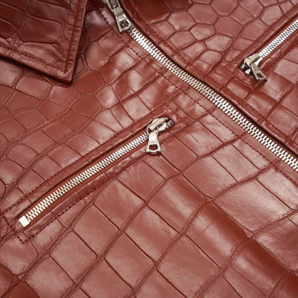 Chaqueta de Piel de Cocodrilo Genuina para Hombre, Color Borgoña Rojo Oscuro, Chaqueta de Motociclista de Piel de Cocodrilo con Cuello Camisero y Cierre de Cremallera