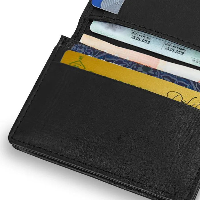 Cartera corta genuina de alta calidad para hombre, Tarjetero con apertura de solapa OEM personalizado, almacenamiento conveniente para recibos de billetes plegados