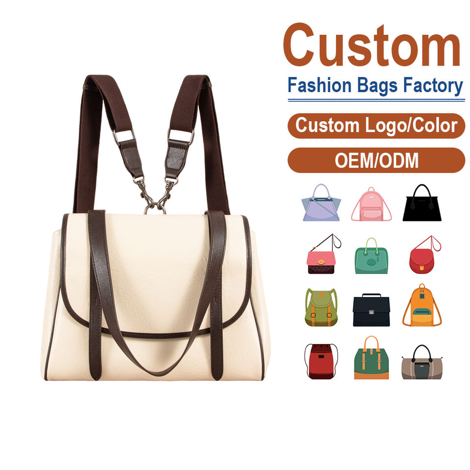 Mochila de Cuero Genuino, Diseño Retro de Contraste, Bolso de Hombro/Axila de Gran Capacidad, Procesamiento ODM