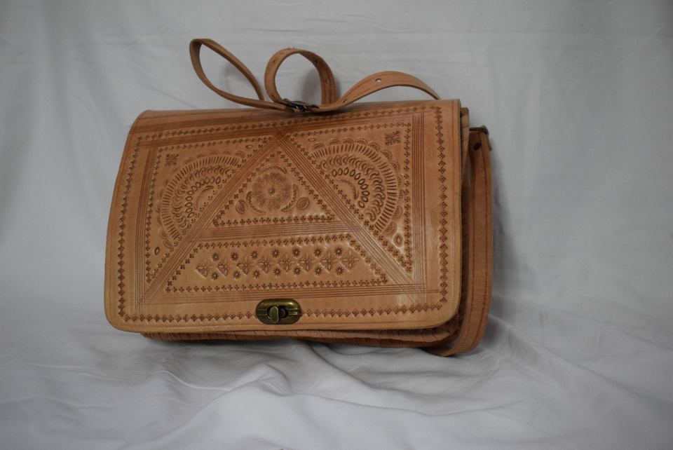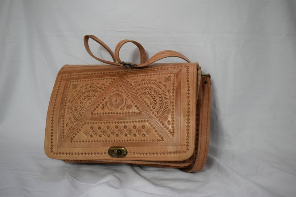 Bolso cruzado tallado de cuero genuino