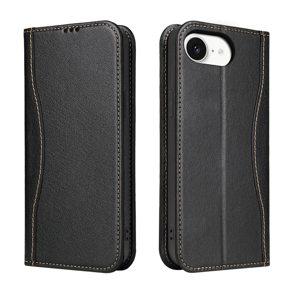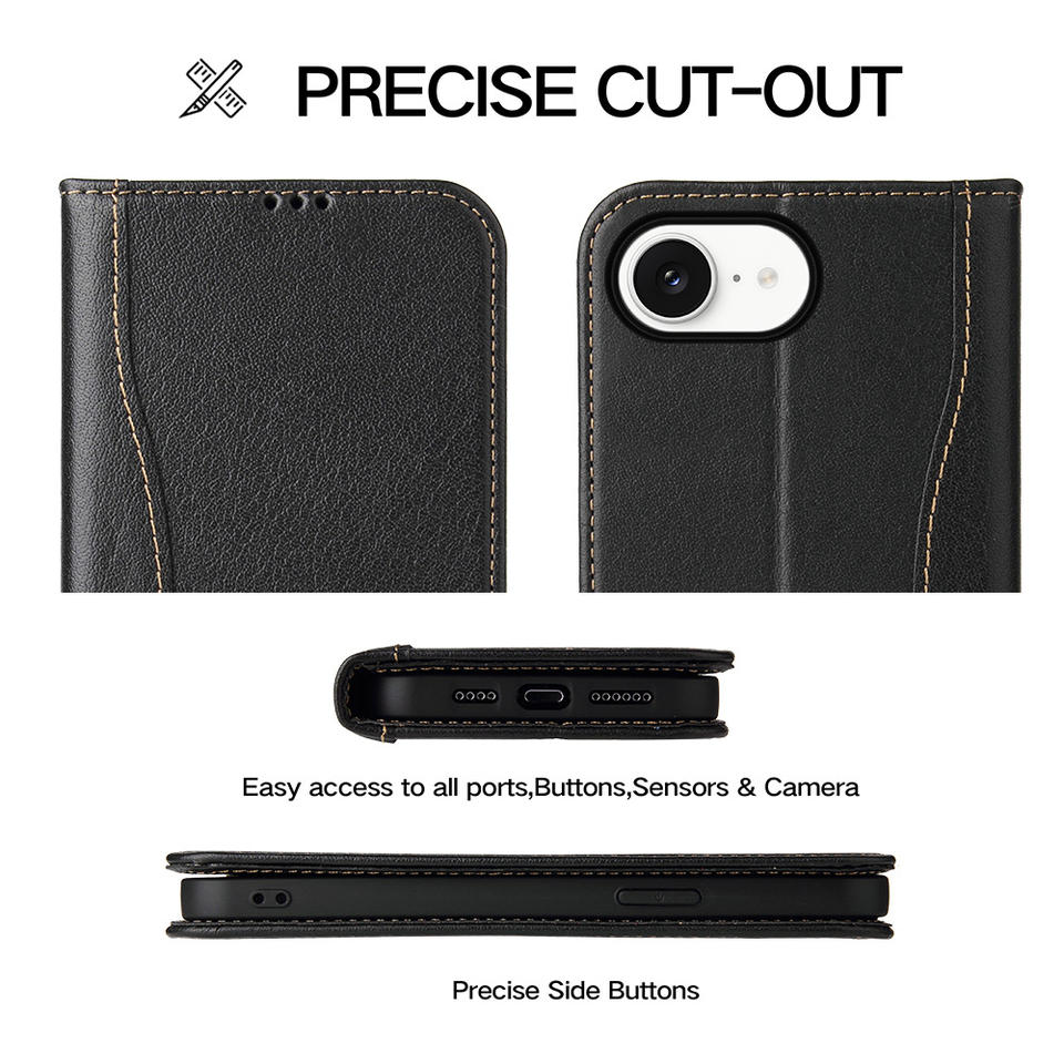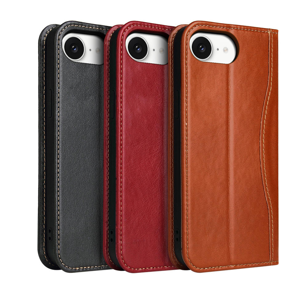 Funda de cuero genuino con función de billetera clásica Flip Folio para teléfono móvil Smart View para iPhone 17 16 SE 16 Pro Max 15 14 13