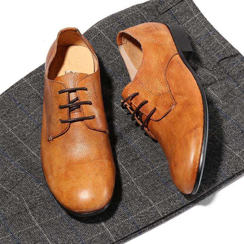 Zapatos de Hombre Hechos a Mano en Cuero Genuino - 2025 Nuevo Calzado Formal Casual de Negocios con Punta Cuadrada Más Vendido