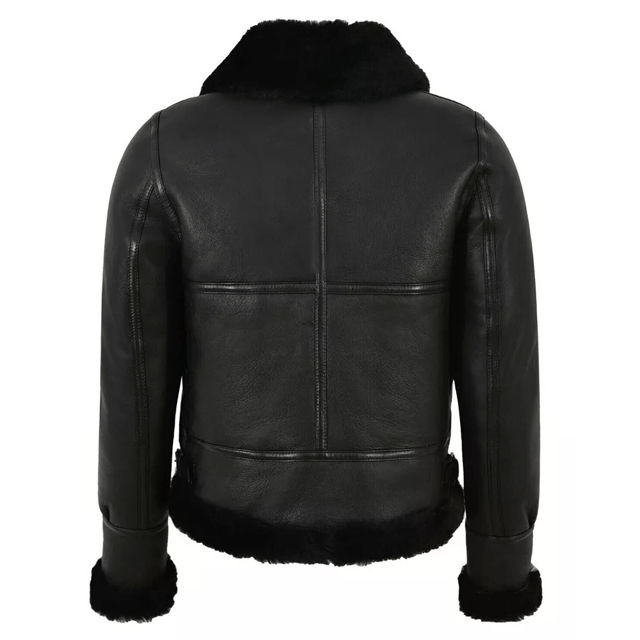 Chaqueta de cuero genuino con piel para mujer Chaqueta de motorista clásica con cierre de botón Durable Suave y elegante