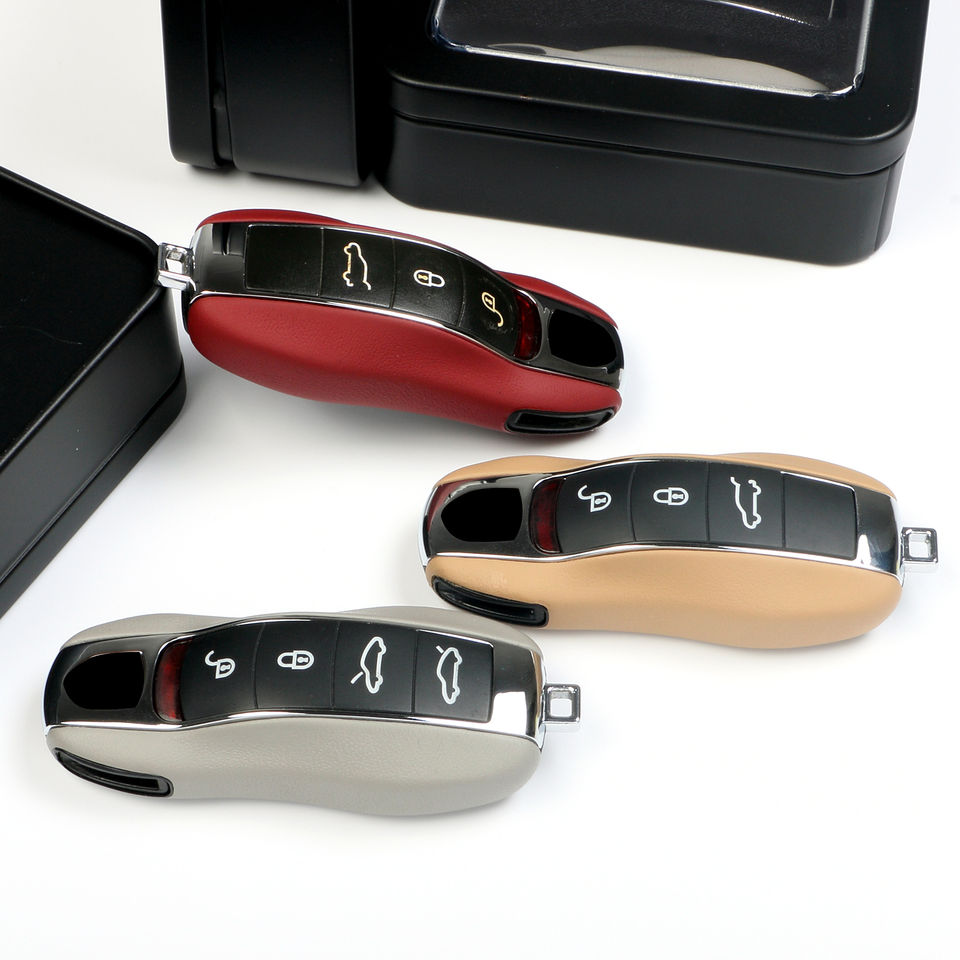 Carcasa de llave de cuero genuino para Porsche Macan 718 Panamera 911 Cayenne Cayman Boxster tipo nuevo y antiguo