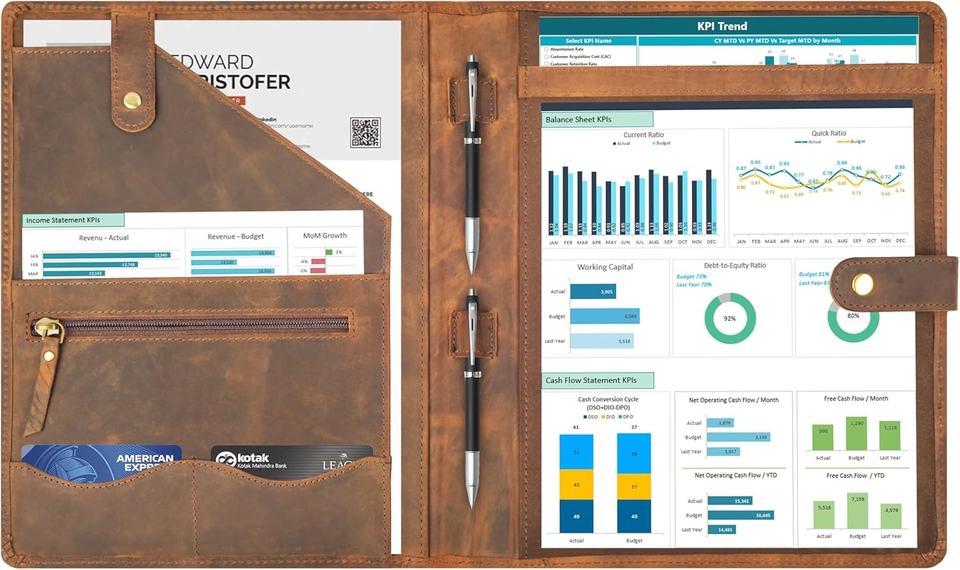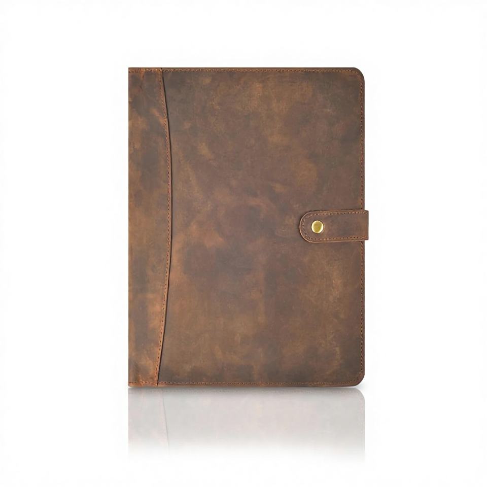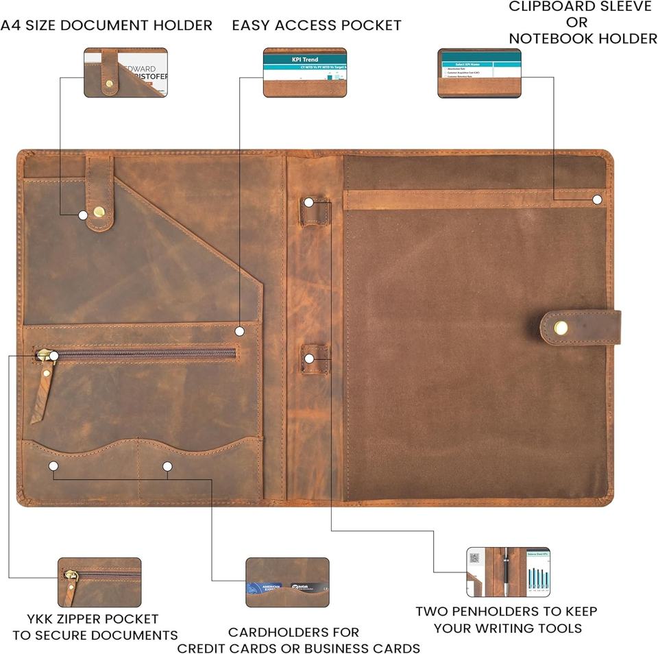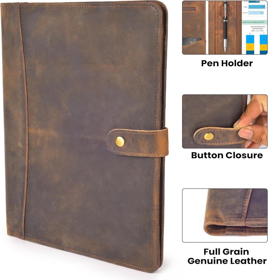 Portafolio de Cuero Genuino LL LEATHER LATCH con Logotipo, Organizador para Hombres y Mujeres, Carpeta con Anillas para Papel A4/Carta, Portaplumas, Portadocumentos
