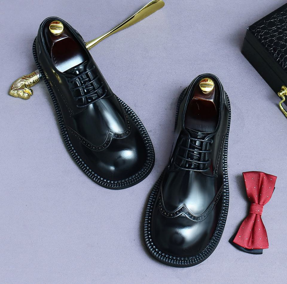 Zapatos Oxford de Piel Genuina para Hombre, con Punta Cuadrada y Cordones, para Primavera y Otoño, Deportivos, Casuales, de Oficina y para el Trabajo
