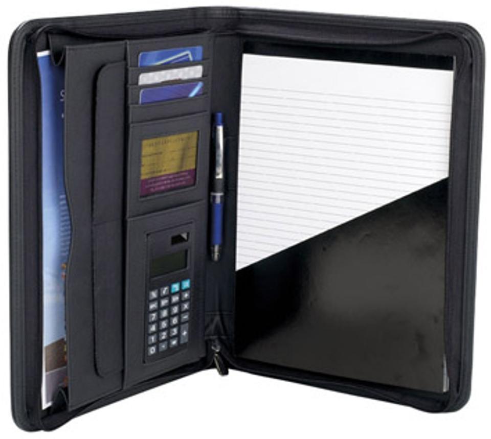 Cartera de cuero genuino Padfolio Conferencia Carpeta de negocios ejecutivo Padfolio datos caso con calculadora y escritura