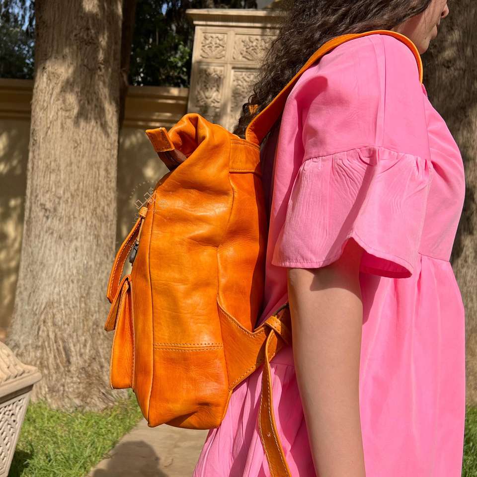 Mochila de cuero con cierre enrollable