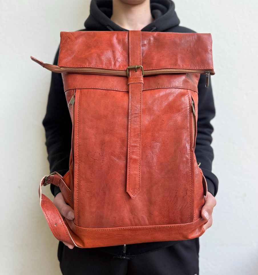 Mochila de cuero con cierre enrollable