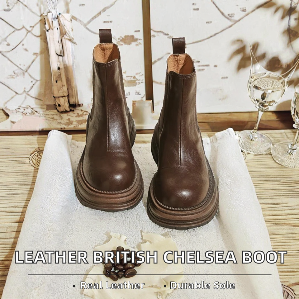 Botas Chelsea Vintage con Forro de Cuero Genuino, Suela de Goma, Estilo Británico, Botines Cortos para Mujer, Nueva Llegada