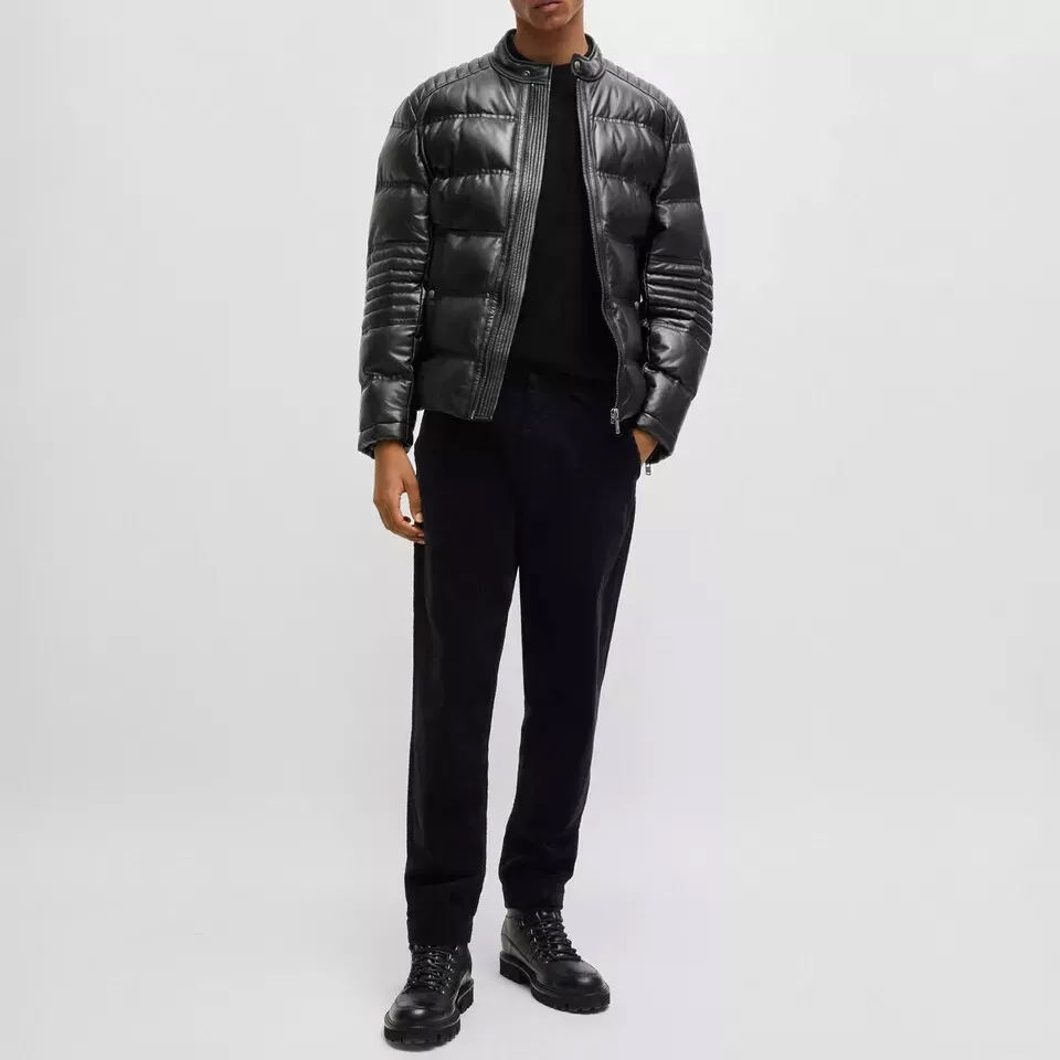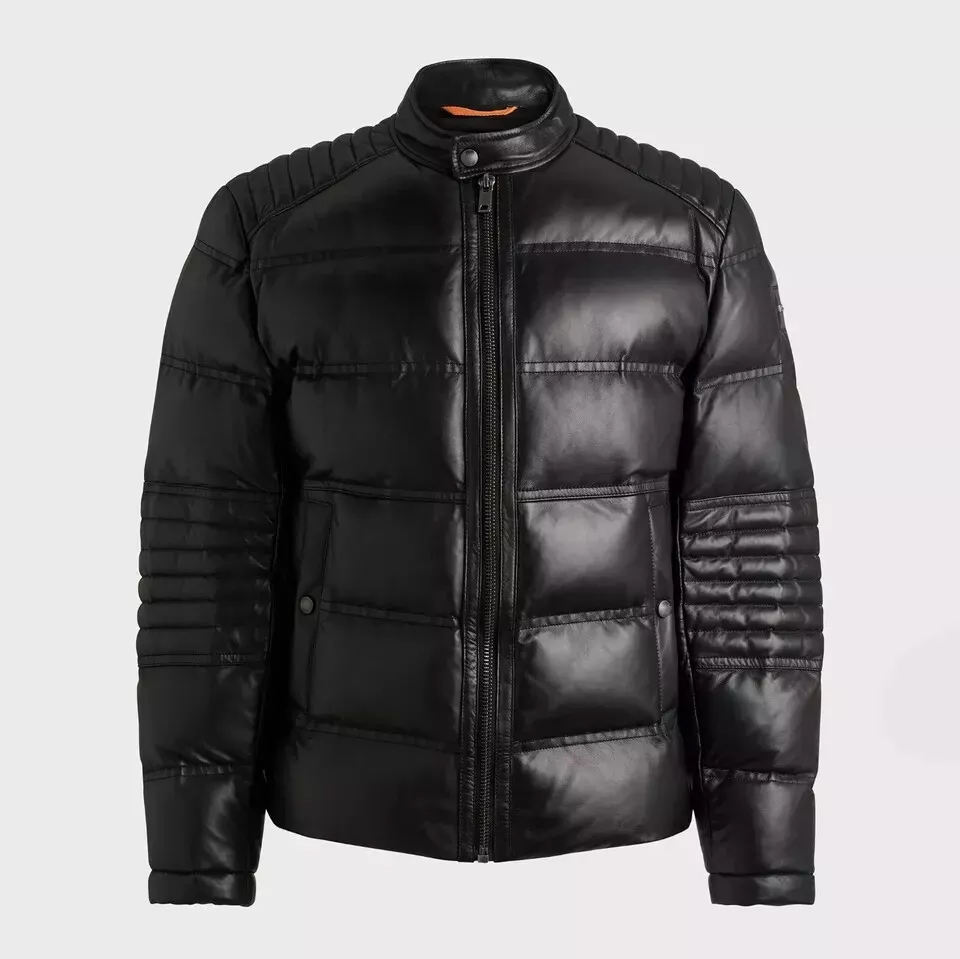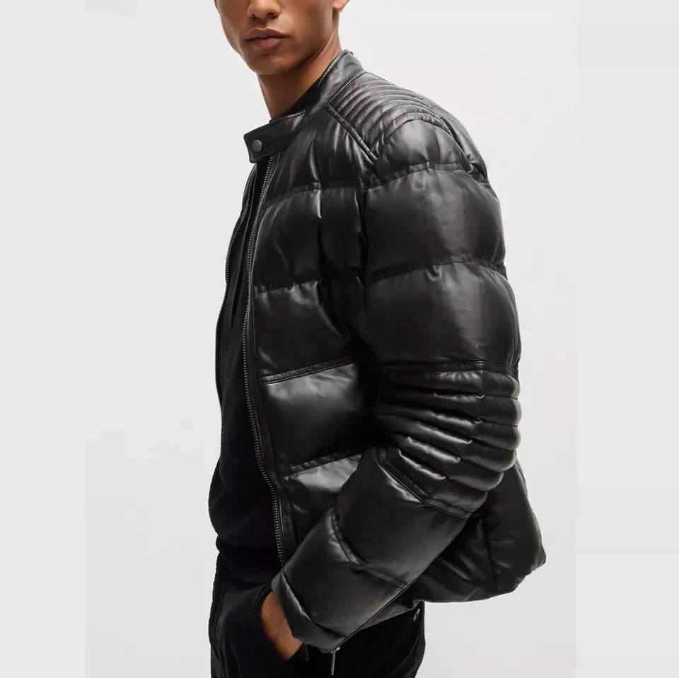 Chaqueta acolchada de cuero genuino para hombre, ligera y elegante, con cuello levantado personalizado, lona, invierno, calle alta, moda, ropa de invierno con burbujas