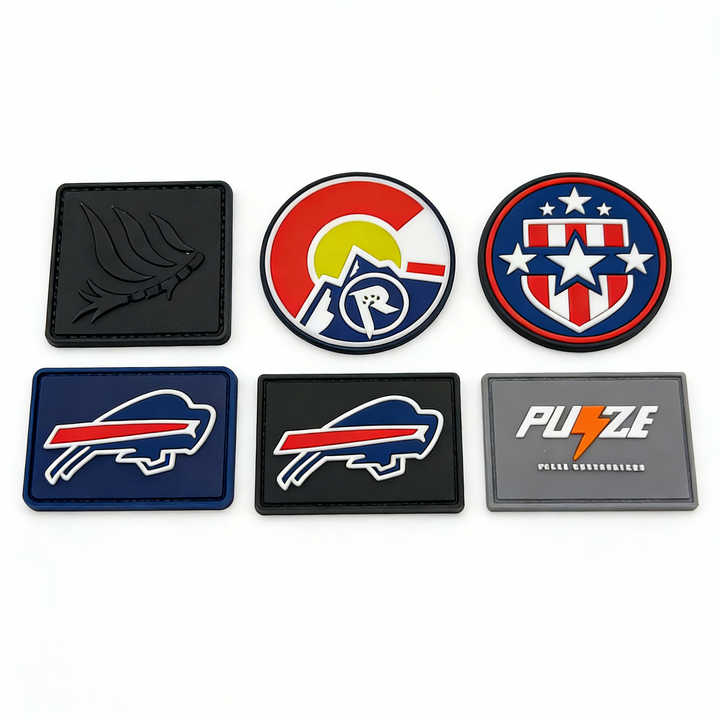 Parche de PVC genuino de la marca Maker Free Mockup 2D, personalizado, lavable, de goma suave, de polivinilo cloruro, para coser en prendas de vestir.