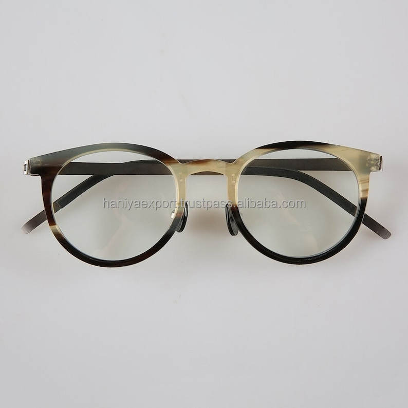 Cuerno de búfalo natural genuino Marcos de gafas de titanio redondos hechos a mano-Hombres-Mujeres-100% Cuerno de búfalo genuino