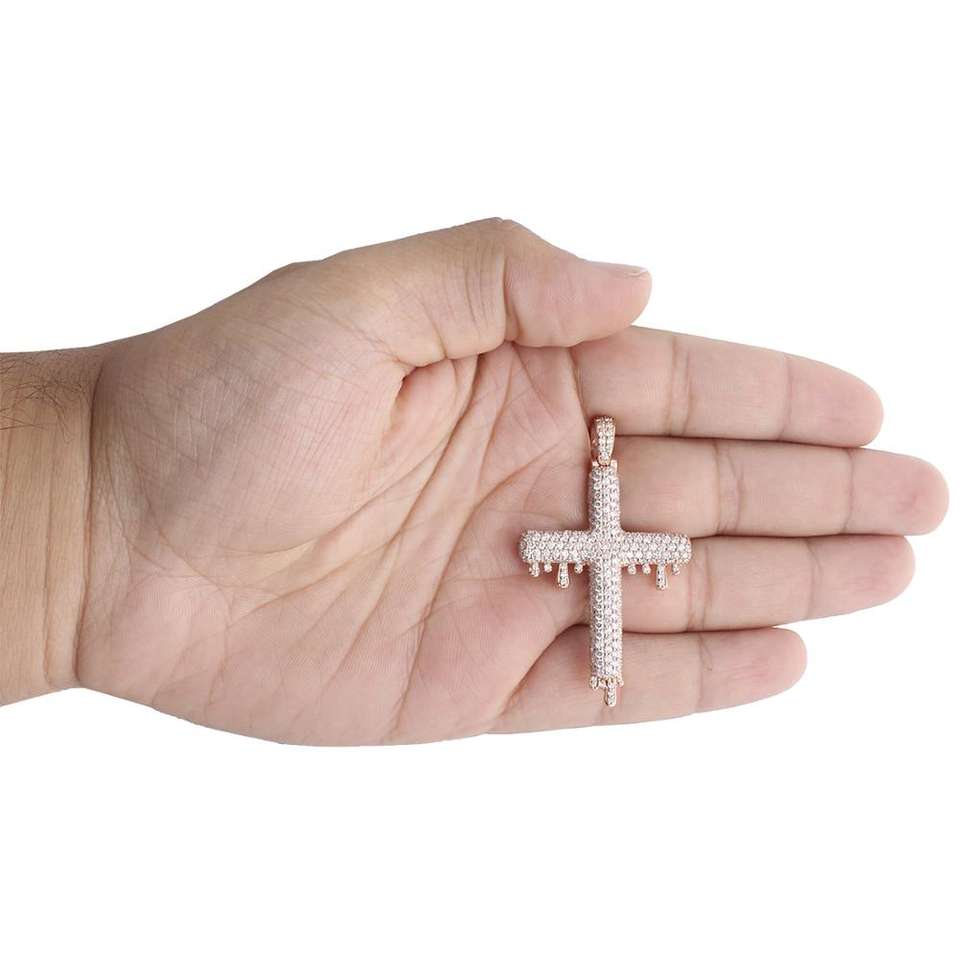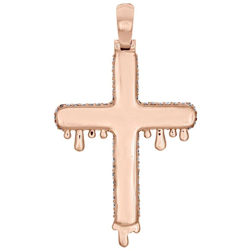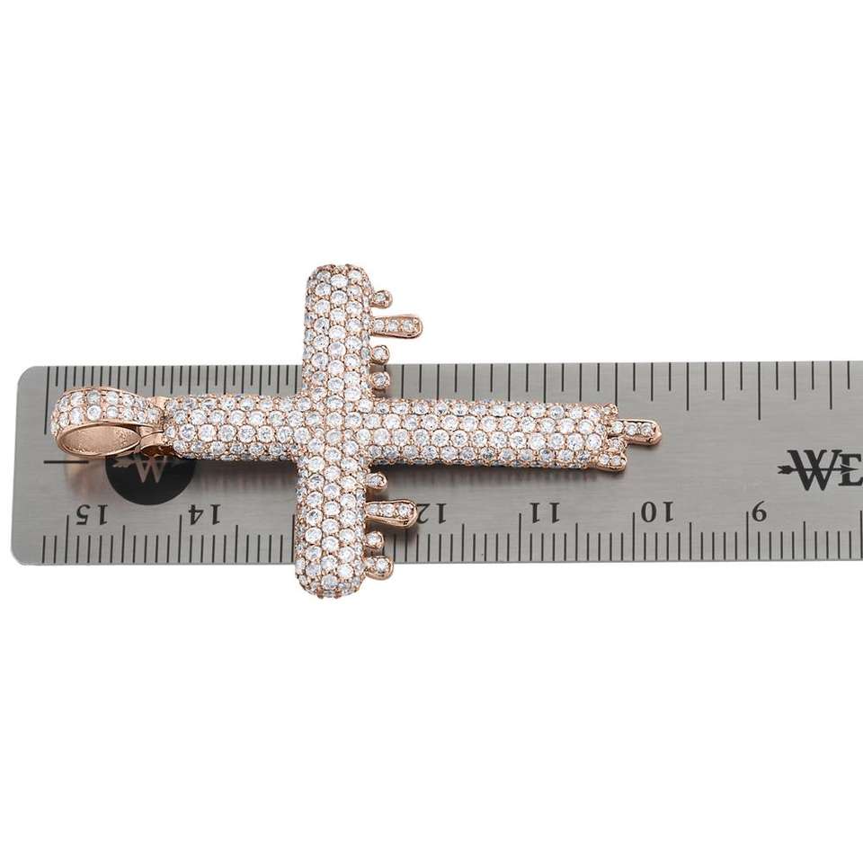 Colgante de Cruz con Diamantes Redondos Genuinos en Oro Rosa, Joyería Hip Hop con Incrustaciones de Diamantes, Colgante de Cruz con Diamantes