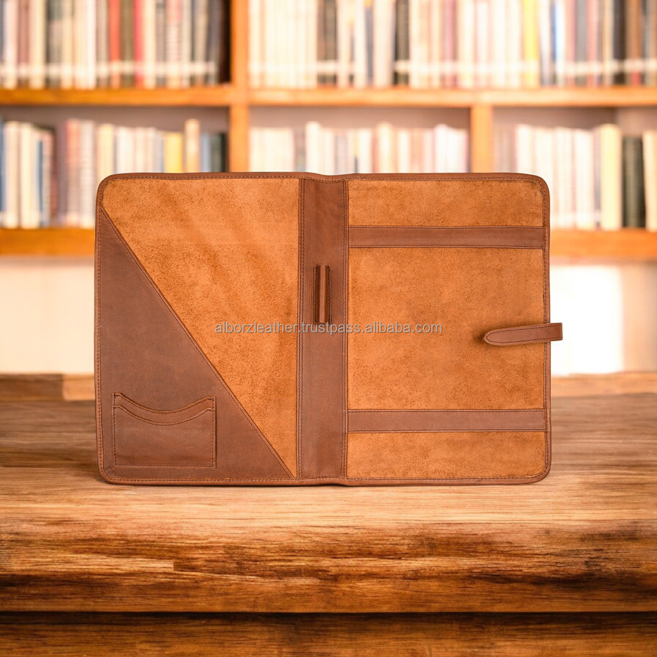 Cartera de negocios de cuero Vintage genuino Carpeta de archivos organizadora portátil de moda para viajes de Conferencias Ejecutivas