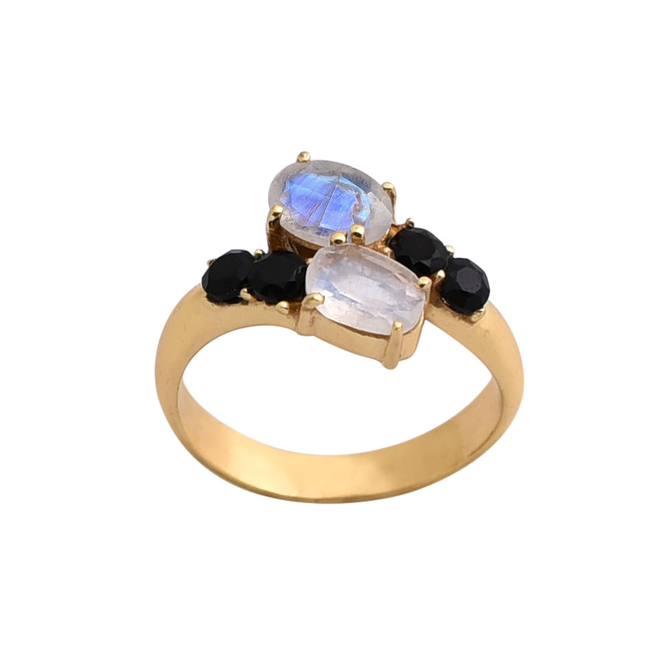 Anillos de piedra lunar arcoíris genuinos, piedras preciosas, Plata de Ley 925, anillo de diseñador chapado en oro, joyería, pedido a granel, anillo de moda