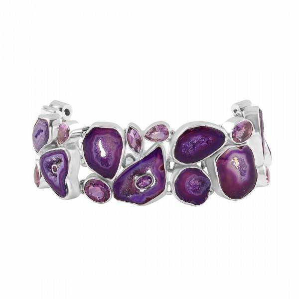 Nombre del producto:Geode druzy y amatista 925 pulsera de plata esterlina joyería hecha a mano