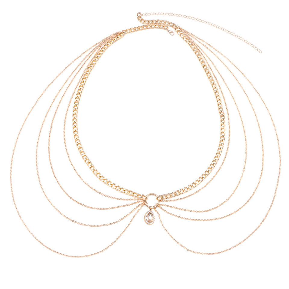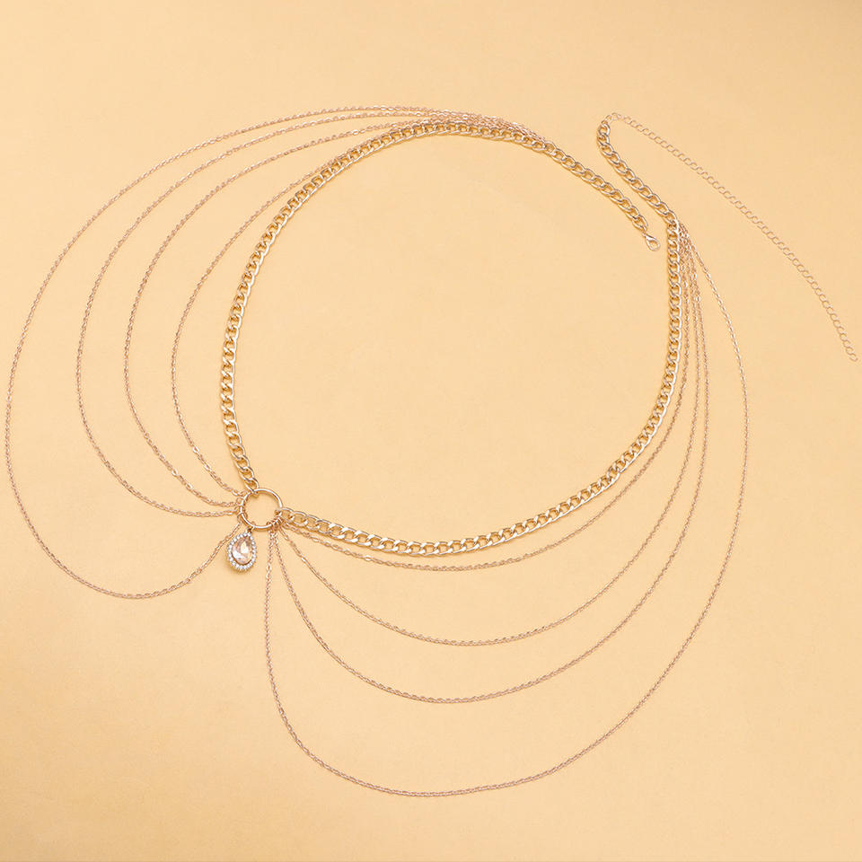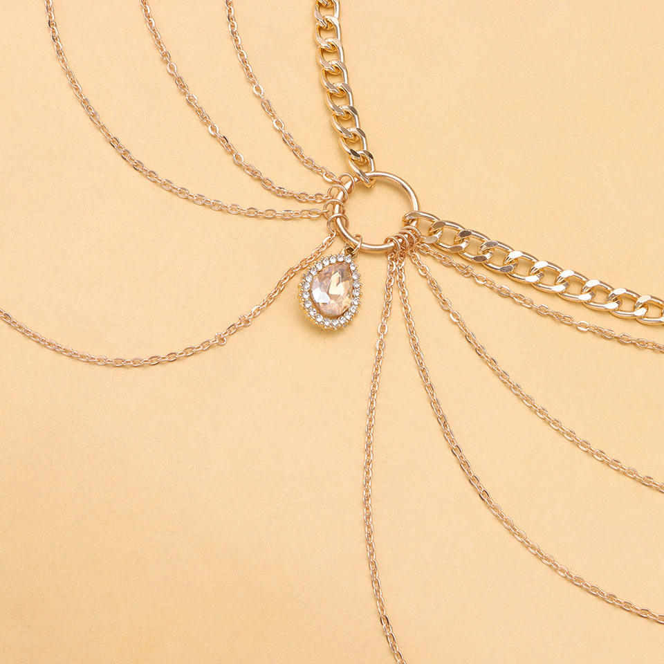 Cadena corporal geométrica de varias capas con diamantes de imitación para mujer, joyería de fiesta, aleación de zinc, color oro champán