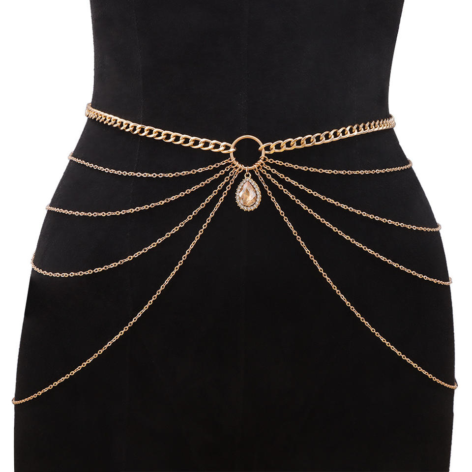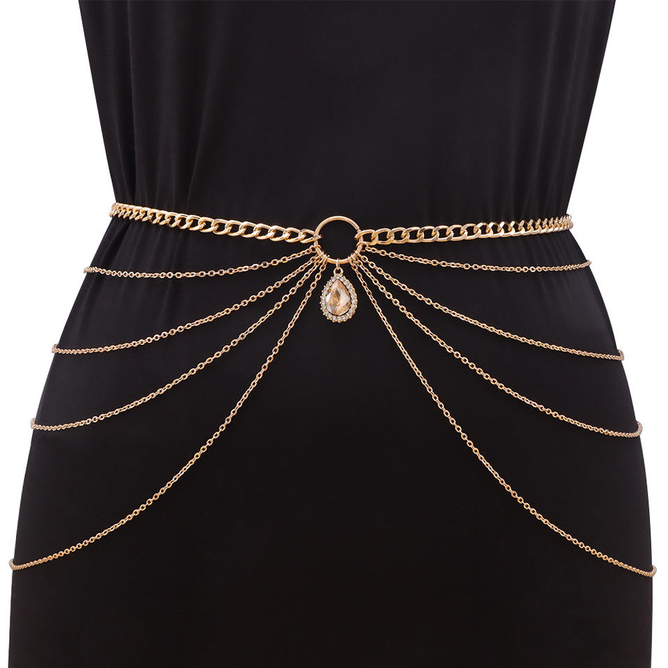 color:Multi-layered champagne gold gemstone waist chain