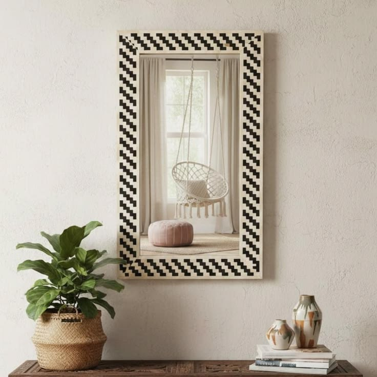 Marco de Espejo Decorativo Hecho a Mano, Ligero, con Incrustaciones de Hueso Geométricas, Estilo Art Deco Moderno, para Proyectos de Decoración de Interiores