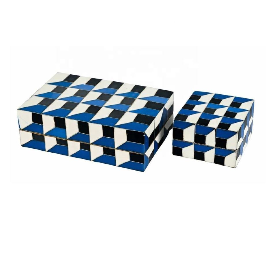 Caja de joyería decorativa con incrustaciones de hueso hechas a mano con diseño geométrico, caja de almacenamiento de joyería, hechas a mano cajas decorativas, vajilla con incrustaciones de hueso