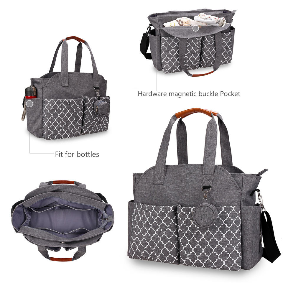 Bolsa de pañales geométrica con bolsa para chupete, bolsa de almacenamiento de poliéster para mamá, para viajes y uso al aire libre
