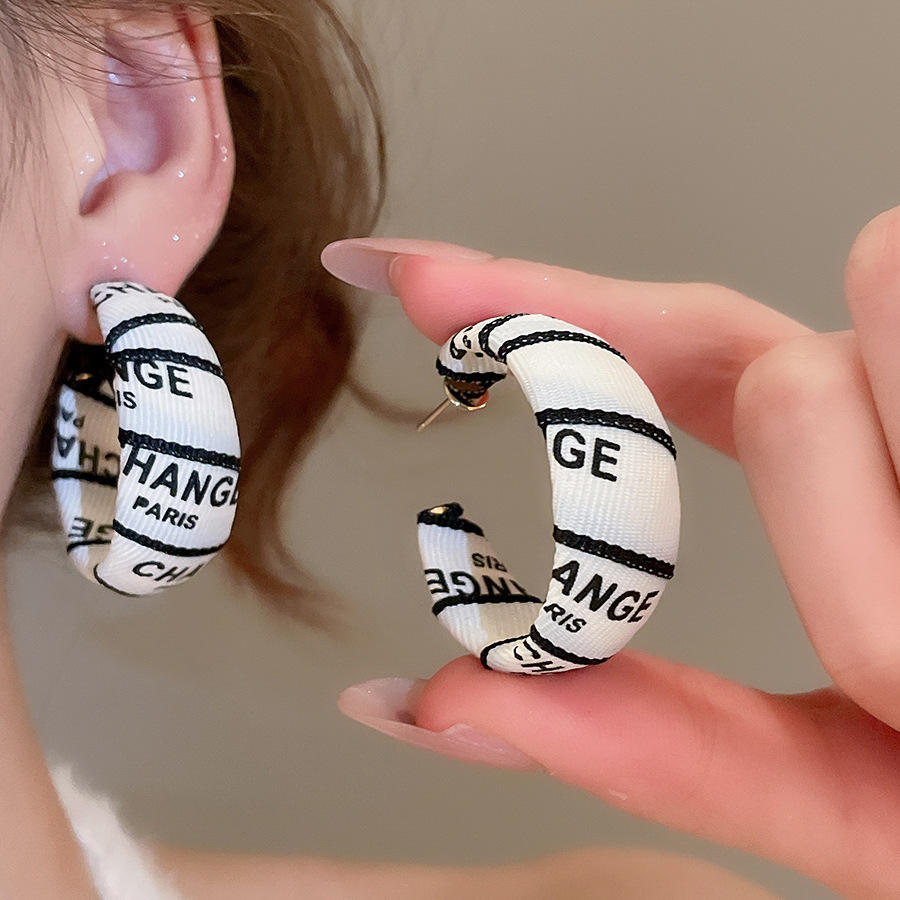 Joyería de moda geométrica para mujer, tela de aguja plateada, pendientes de aro con estampado de letras en forma de C