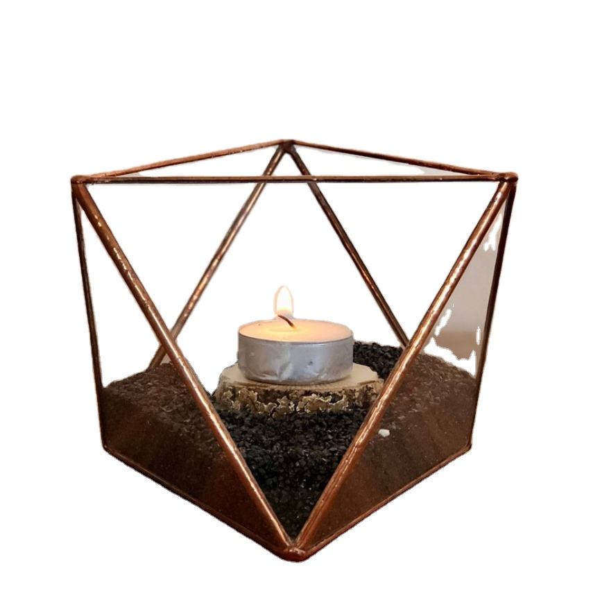 Contenedor de Terrario de vidrio geométrico al por mayor colorido esmerilado ámbar negro claro estampado de San Valentín cilindro de Metal de seda hecho a mano