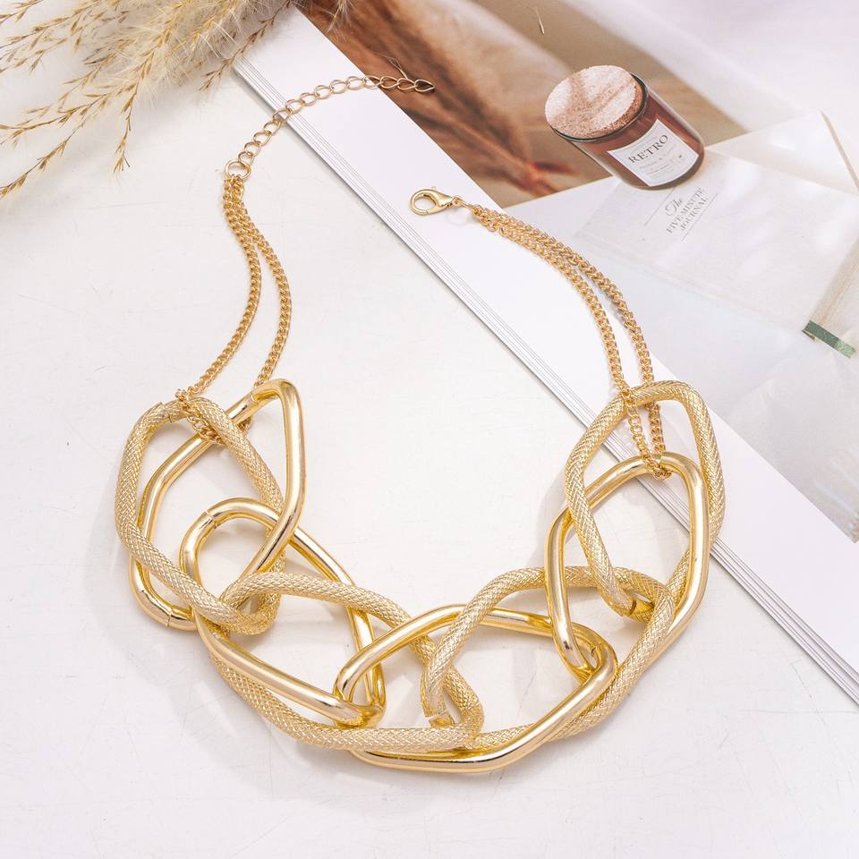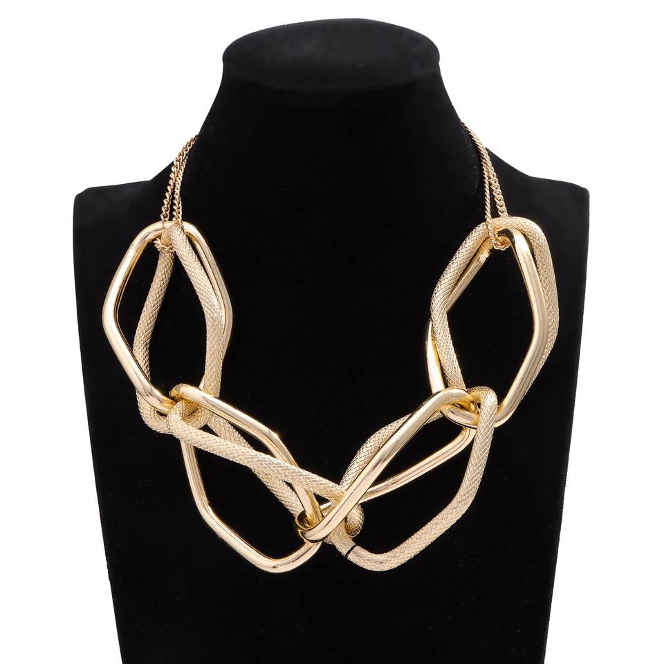 Collar de cadena gruesa geométrica dorada para mujer, joyería de moda para fiesta, diseño hexagonal de aleación de zinc