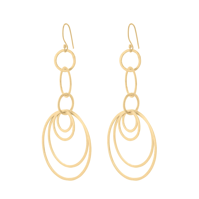 Pendientes colgantes geométricos dorados con múltiples anillos, diseño de círculos en capas, joyería moderna y llamativa para mujer