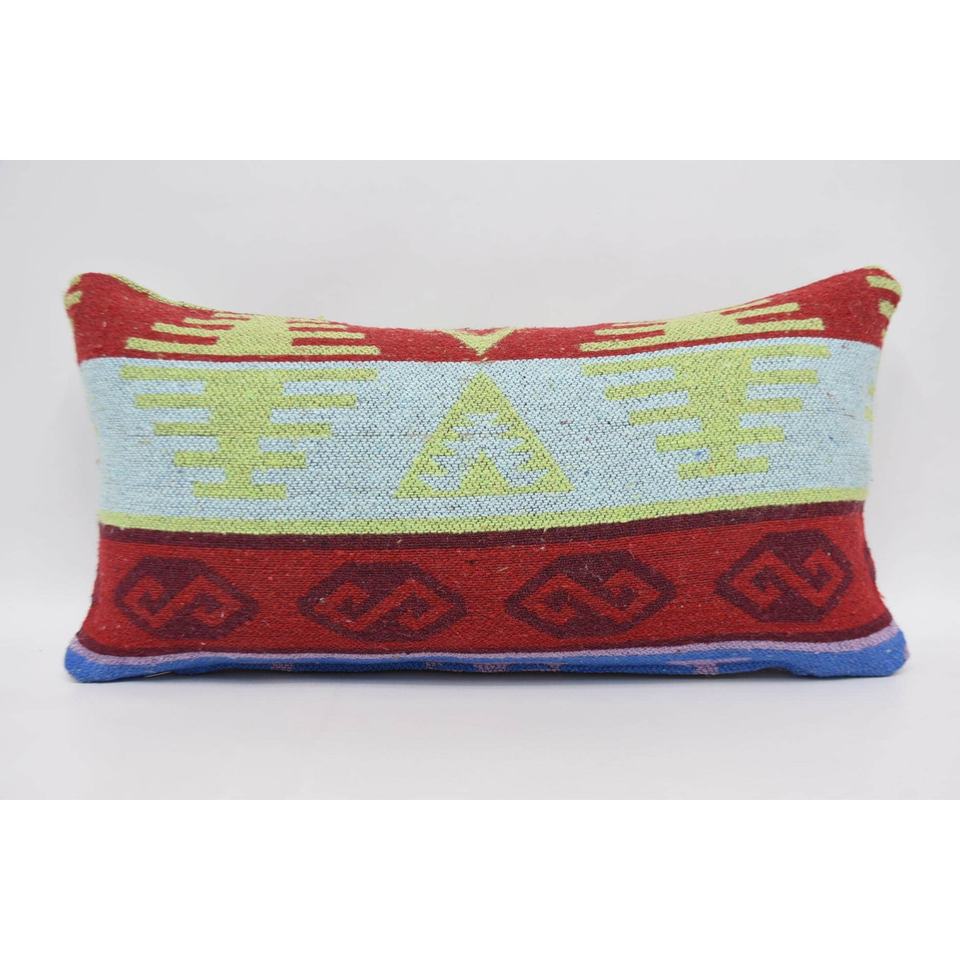Almohada geométrica de lana verde, 12x24 pulgadas, estampado Vintage, diseño tradicional, cojín decorativo liso, técnica tejida portátil