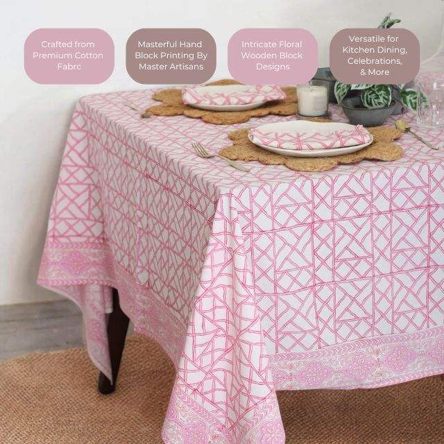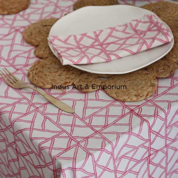 Mantel de algodón estampado con bloque de mano geométrico mantel de comedor al por mayor cubierta de mesa de algodón hecha a mano