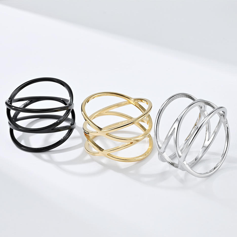 Anillo hueco geométrico de varias líneas para mujer, joyería de fiesta de oro amarillo, anillo para dedo índice K R671