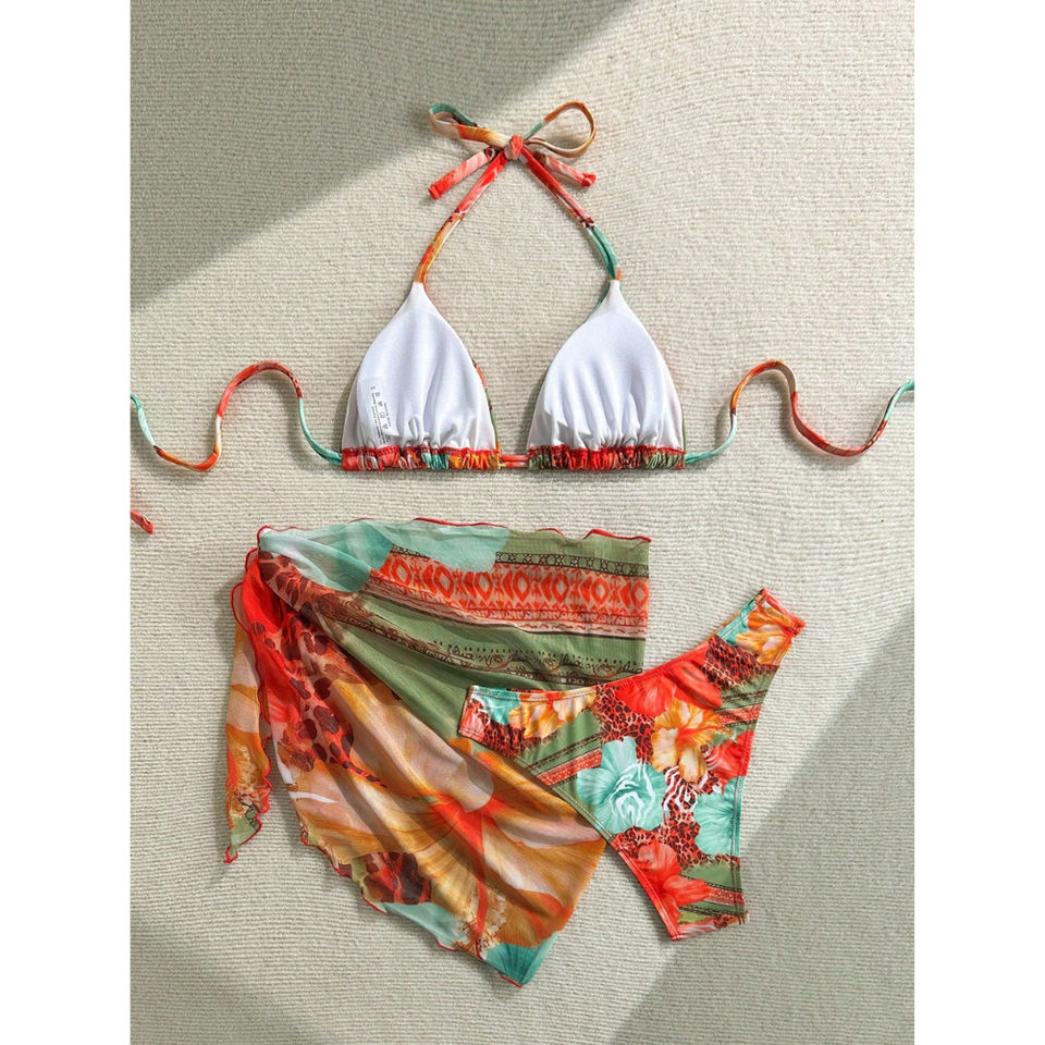 Conjunto de Bikini a Rayas con Estampado Floral y Patrón Geométrico, Traje de Baño Sexy con Diseño Floral, Sin Varillas, Logotipo Personalizable, Sin Costuras