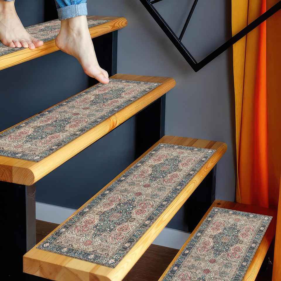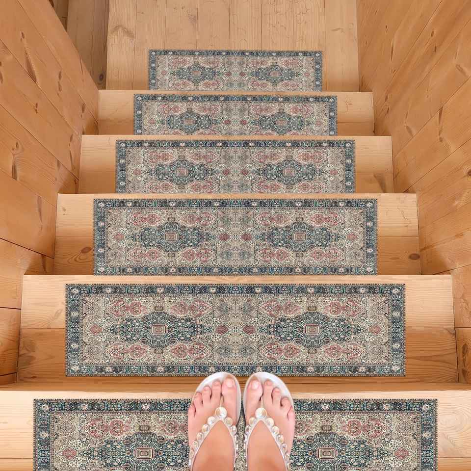Alfombra con Estampado Geométrico, Vintage, Lavable, Regalo, Turca, Personalizada, Alfombra de Entrada
