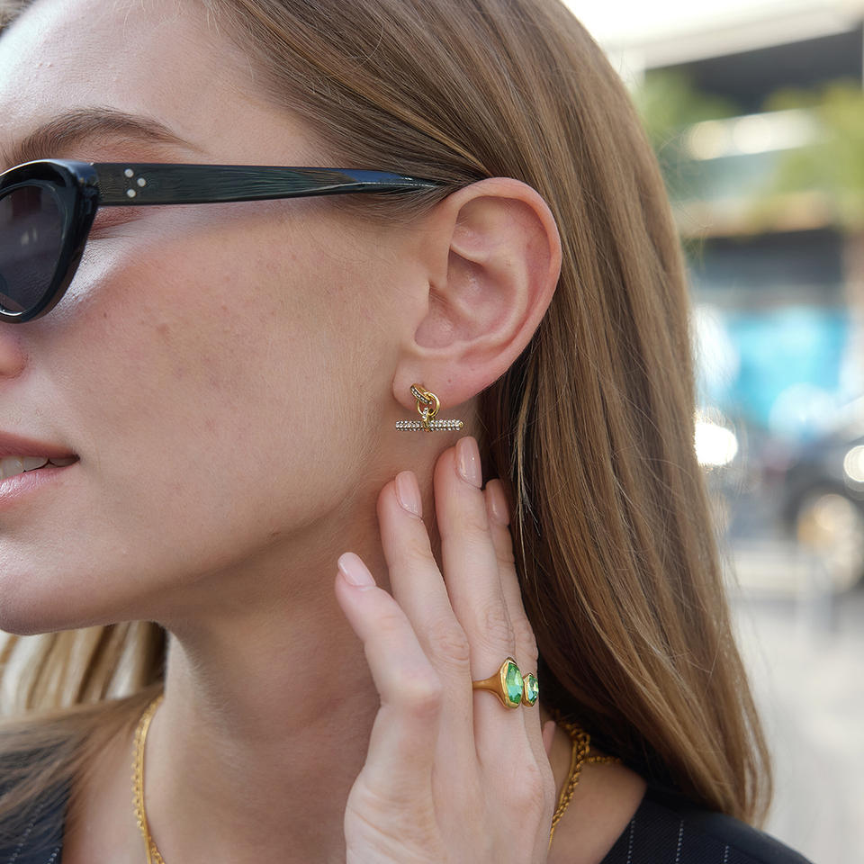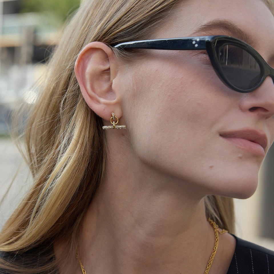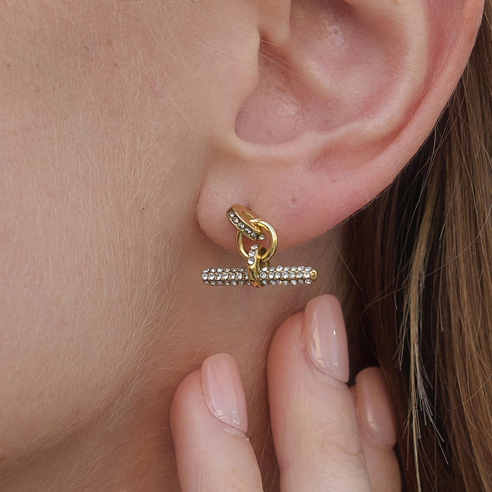 Geometric Rhinestone T-Shaped Stud Earrings Titanium Steel Channel Setting Party Fashion Jewelry
