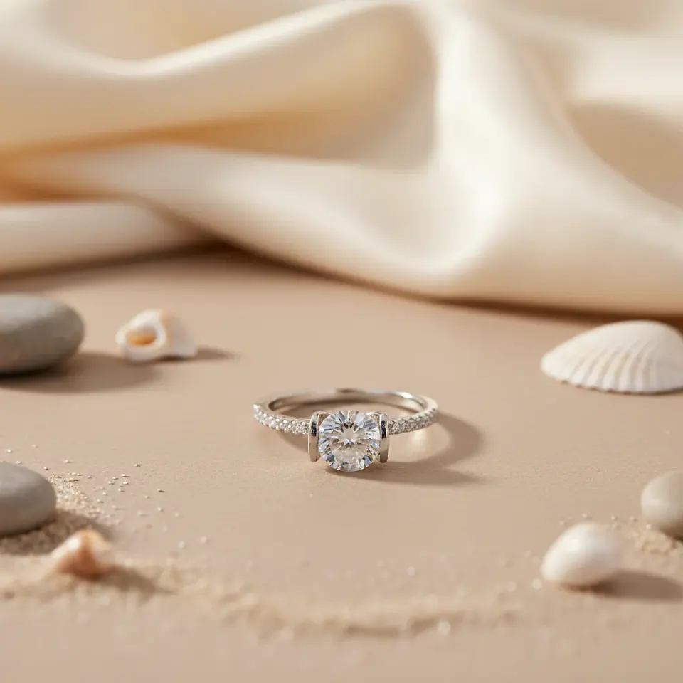 Anillo de Compromiso de Plata 925 con Circonita Cúbica y Baño de Rodio Geométrico