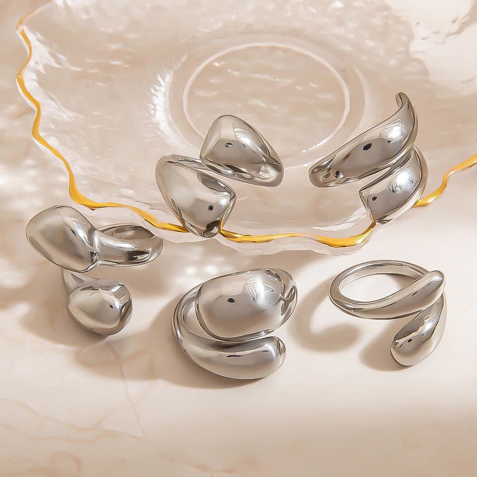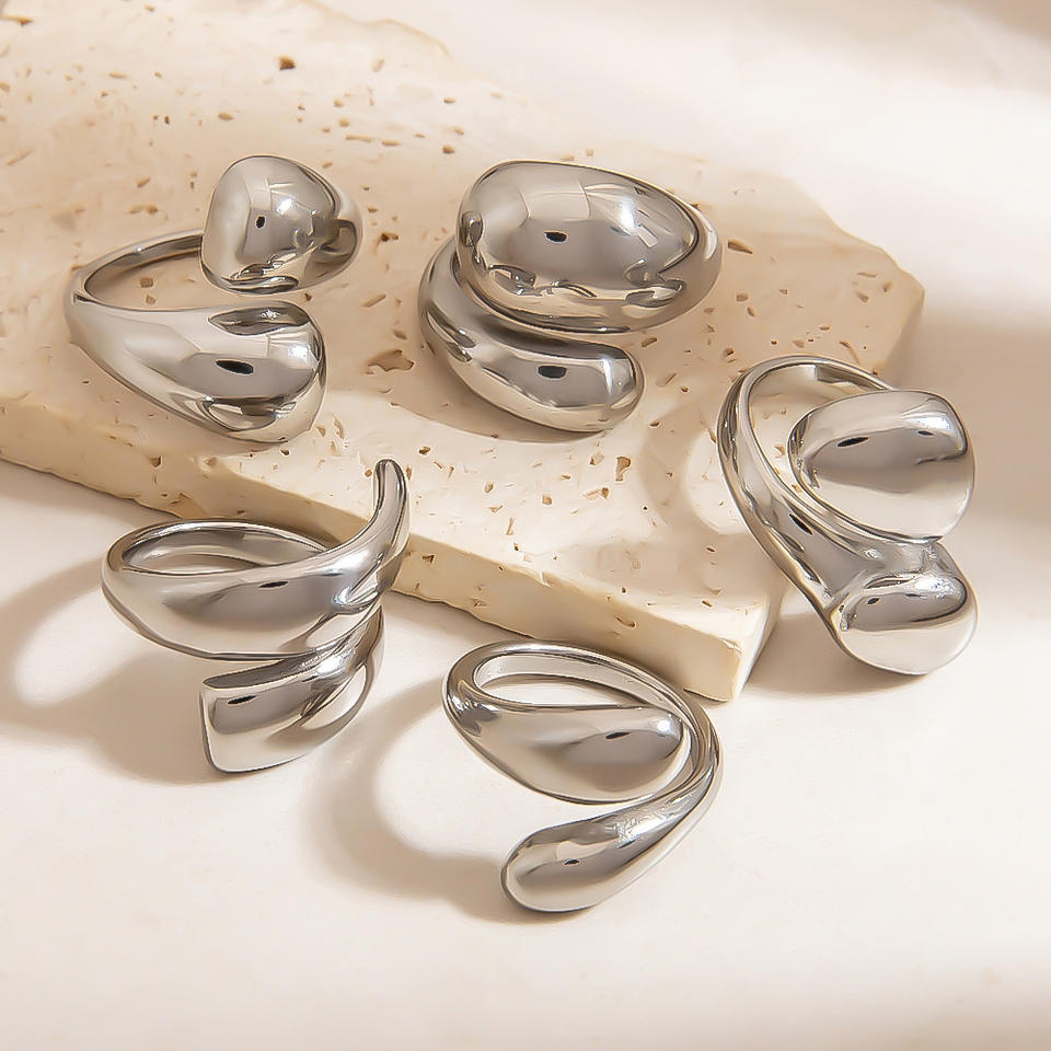 Anillo Geométrico de Acero Inoxidable, Forma Elíptica Irregular, Joyería Unisex para Uso Diario