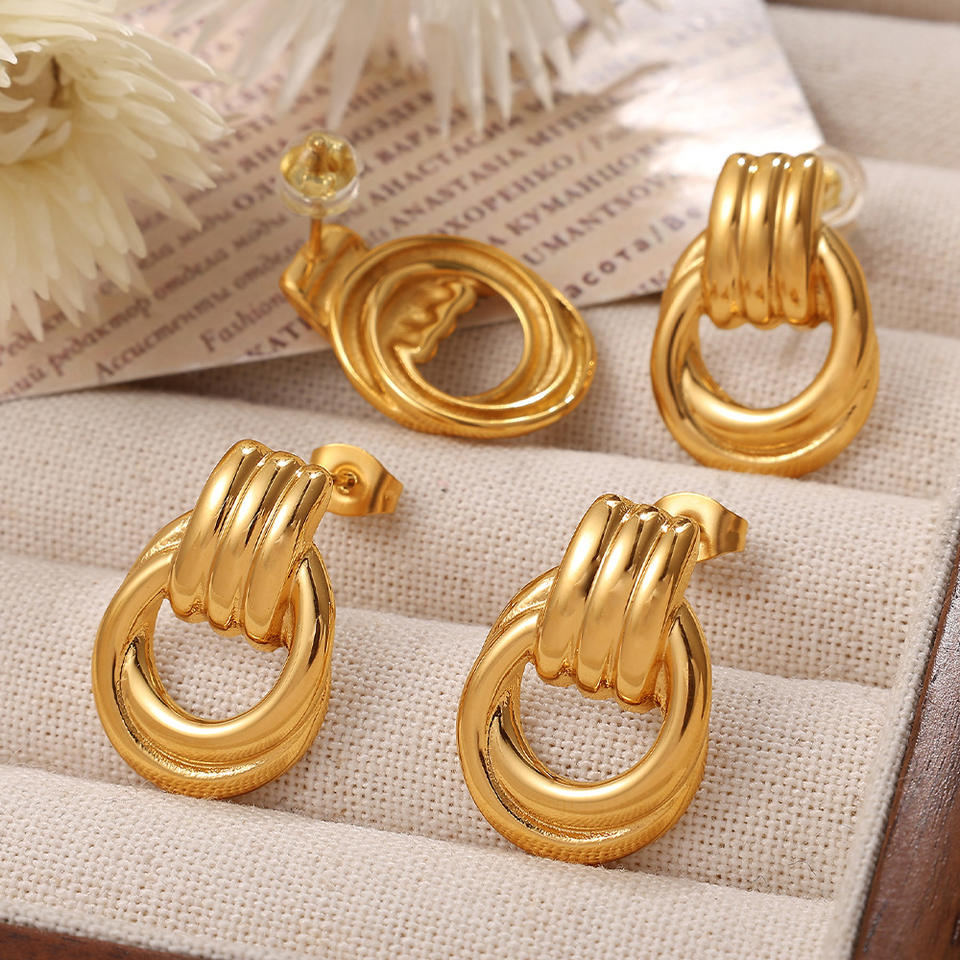 Pendientes geométricos con diseño de hilo irregular dorado para mujer, joyería de moda