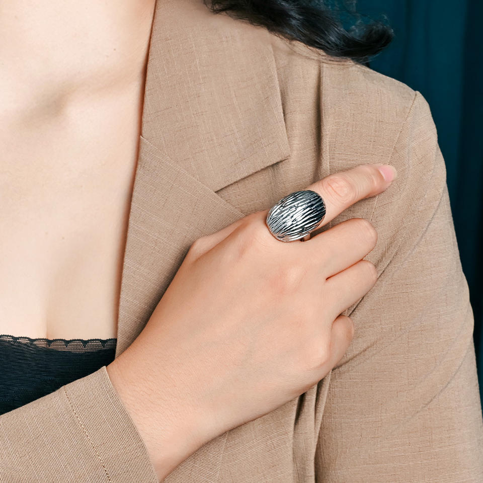 Anillo Geométrico de Acero de Titanio Chapado en Oro de 18K para Mujer, Uso Diario
