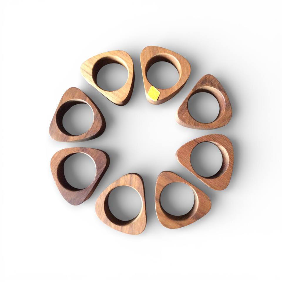 Anillos de Servilleta Geométricos de Madera con Diseño Triangular para una Presentación de Mesa Moderna y Única