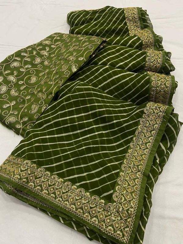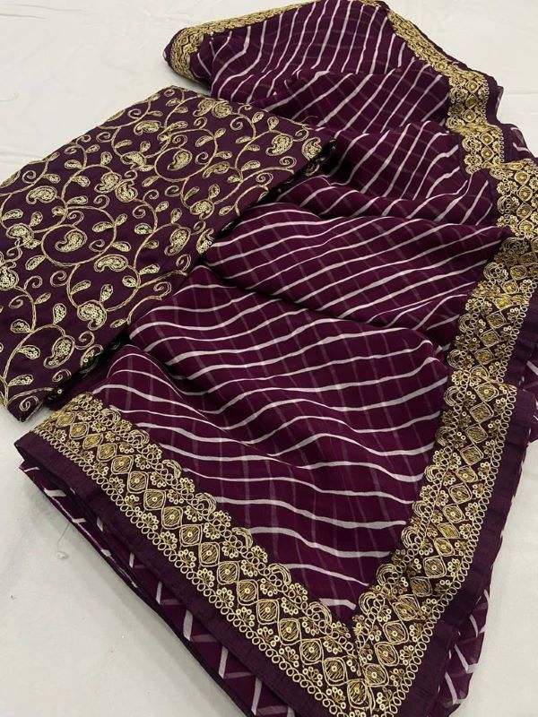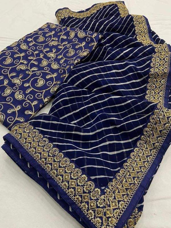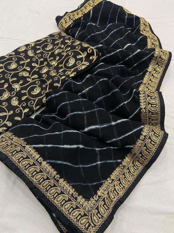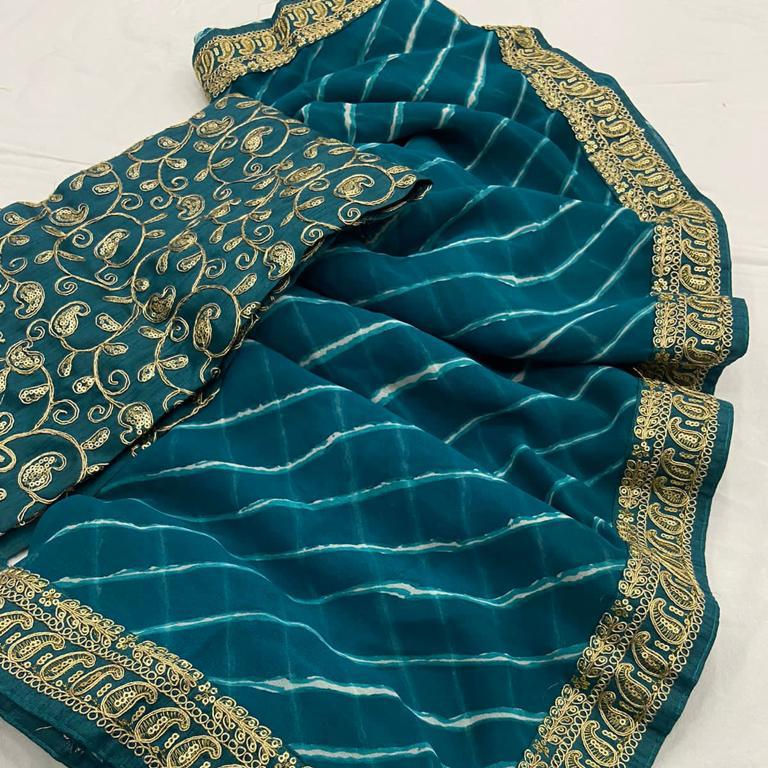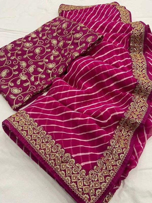 Georgette-tela Saree con bordado, bordada, borde de trabajo, blusa de trabajo por encima de todo, estampado en Saree, ropa informal de Color hermoso